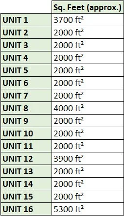 UNIT SIZE Starting at Approx. 2,000 Sq ft